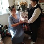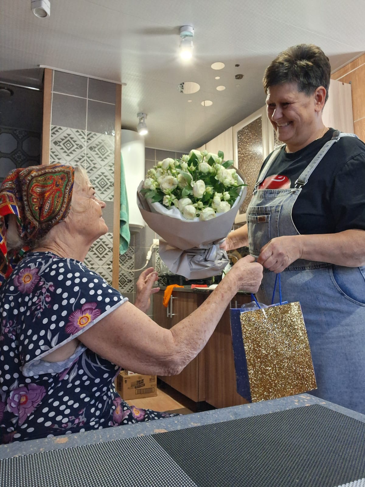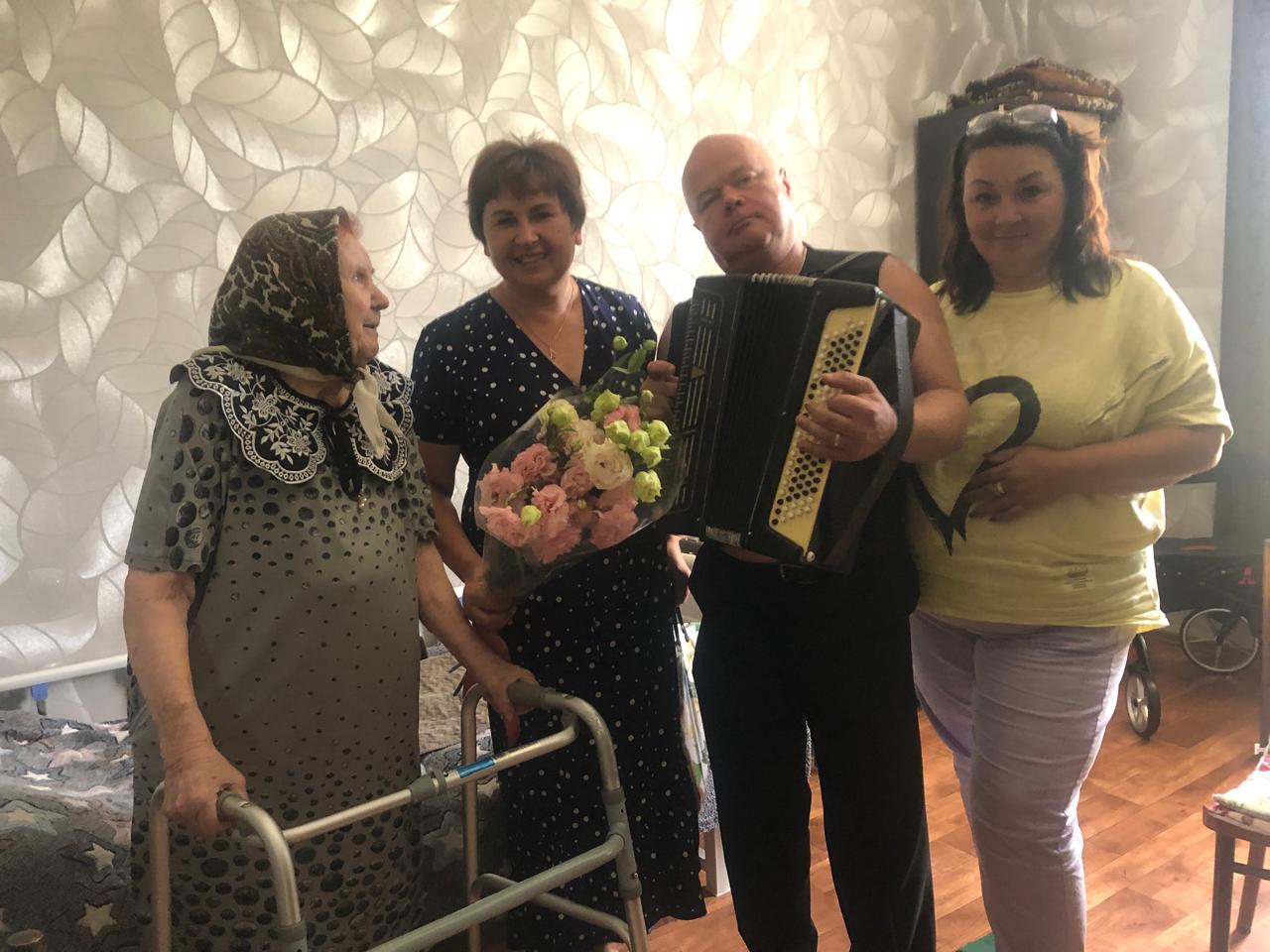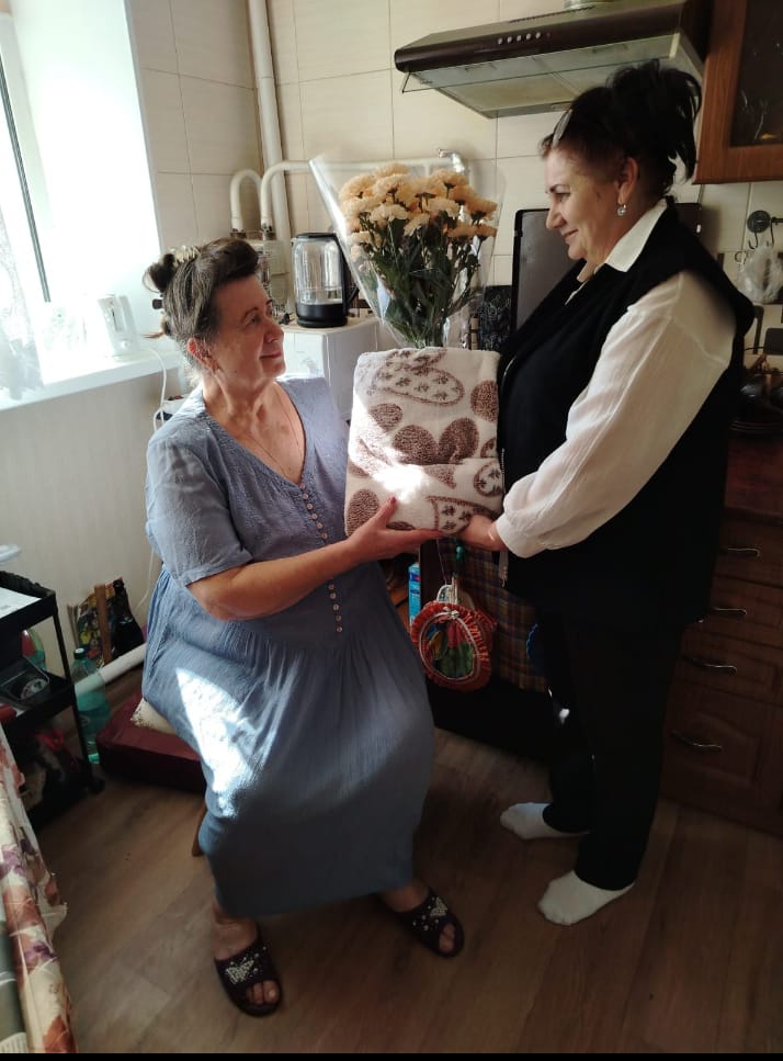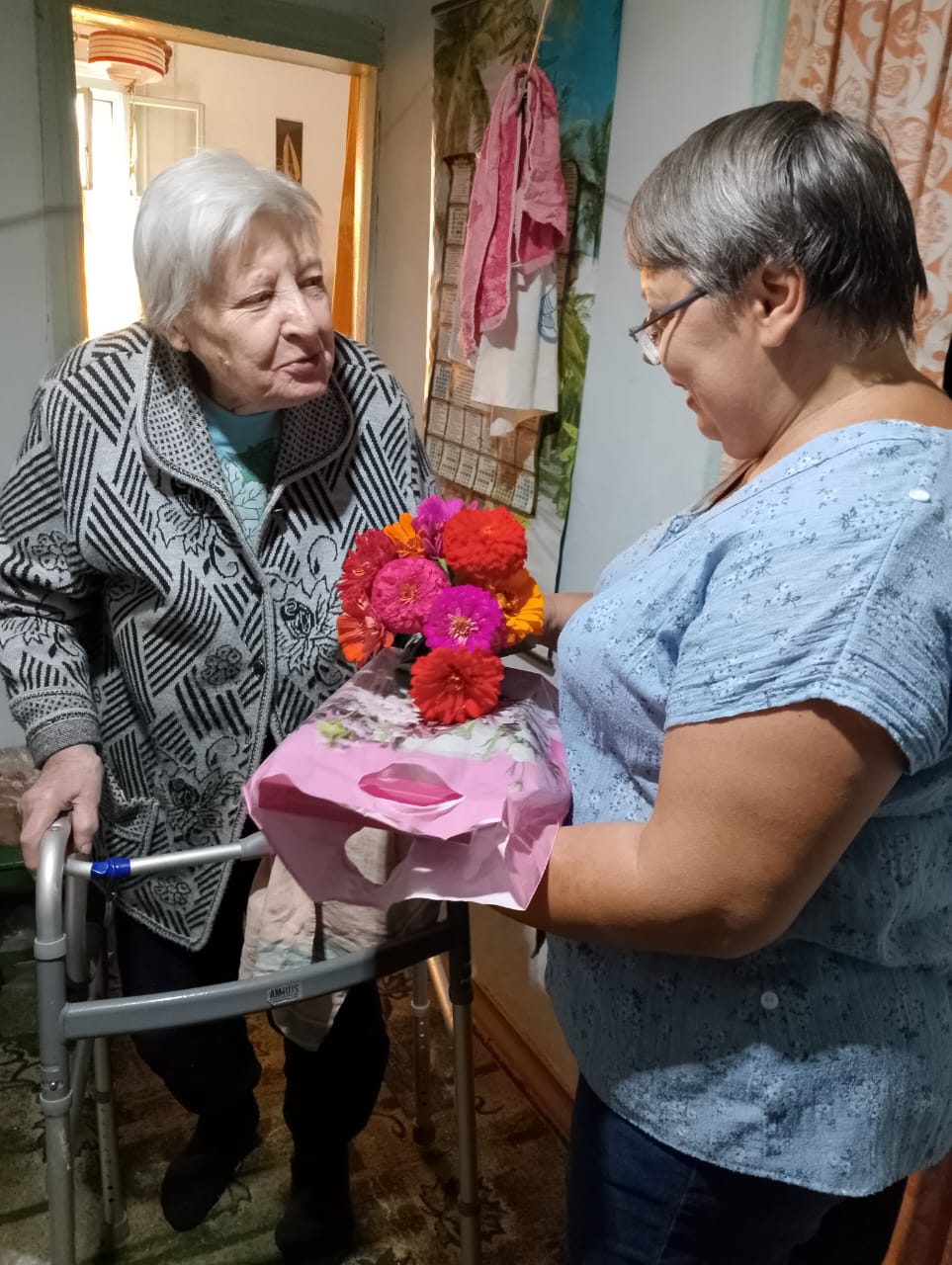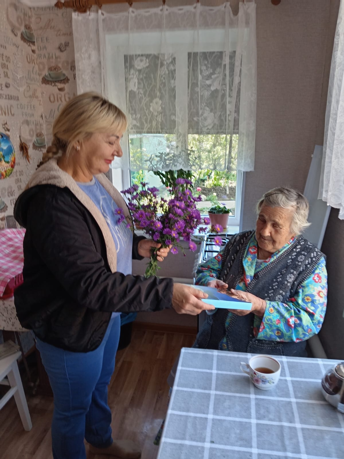 5. Акция «Осенний букет поздравлений» – душевные поздравления, подарки, цветы получили юбиляры-долгожители: Шахмина В.С. – 100 лет; Шайдюк Н.Ф. – 99 лет; Потапова Н.И. – 95 лет; Крюкова М. Я. – 96 дет; Ленгина Р.Е. – 90 лет; Кольченко В.Д. —  85 лет; Варяницу Л.А. – 80 лет; Чекменева А.В. – 80 лет; Груздева В.Н. – 70 лет (фото№ 11,12,13).