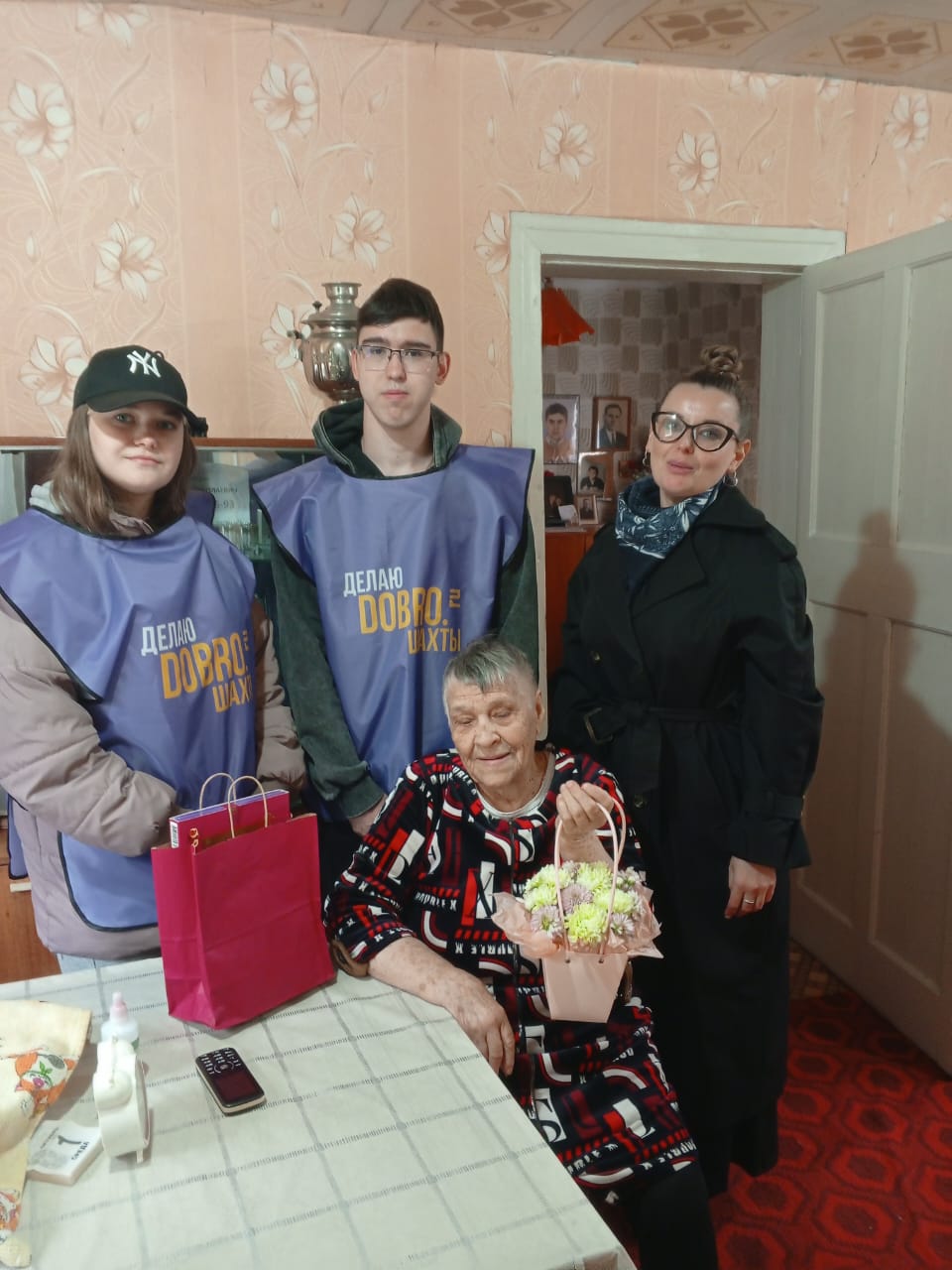 6. Не остались в стороне и молодые волонтеры – старшеклассники МБОУ СОШ № 5, студенты ДГТУ и Шахтинского регионального колледжа топлива и энергетики им. ак. Степанова П.И., вручили цветы и продуктовые наборы 15 одинокопроживающим гражданам, находящимся на надомном обслуживании.