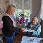 4. Акция «Любовь. Почтение. Забота» – сотрудники учреждения совместно со спонсорами нанесли праздничные визиты 410 получателям социальных слуг, находящимся на надомном социальном обслуживании поздравили с праздником, пожелали здоровья, долголетия и благополучия и вручили продуктовые наборы (фото № 9,10).