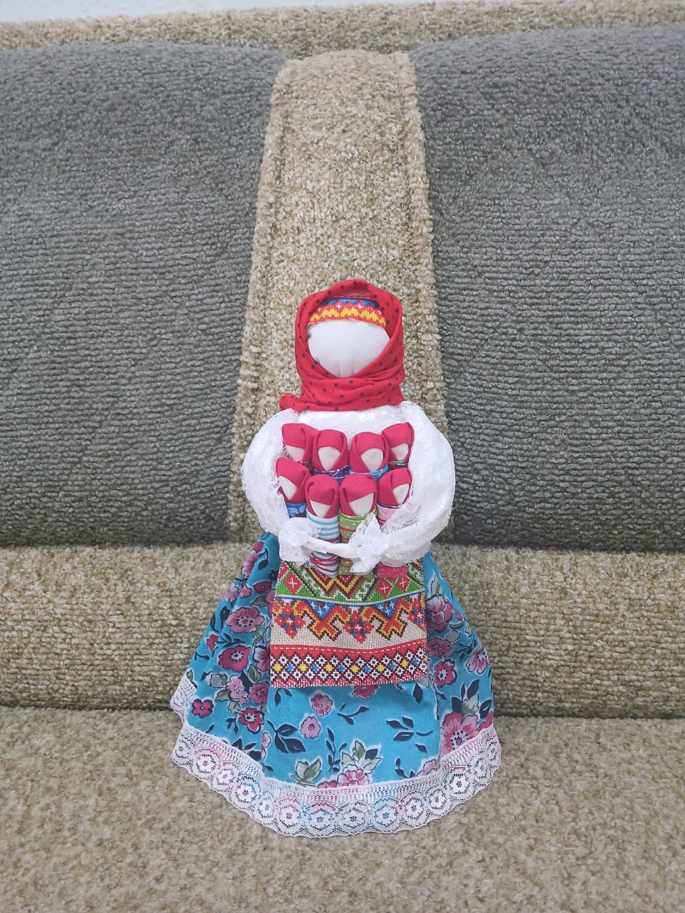 МамушкаПолучатели социальных услуг СРОДП МБУ г. Шахты «ЦСО №1» передали в дар многодетной семье Егоровых куклу-оберег «Мамушка», которую люди «серебряного возраста» изготовили своими руками. Инициатором проекта стала Наталья Пирог – специалист по реабилитационной работе Центра. На занятиях по прикладному творчеству рукодельницы сшили и саму куклу, и ее наряд, и ее деток и конечно, придумали оригинальный декор и украшение их нарядам. Кукла Мамушка – это обереговая кукла. В ней сокрыт символ любви матери – прародительницы к последующим поколениям. Также смысл, который несёт кукла, направлен и на поддержание тёплых, тесных отношений между детками в семье, ведь не случайно куколки — пеленашки располагаются плотно и тесно в руках Мамушки. Мамушка – хранительница очага, устроительница мудрого быта, добрая хозяйка, статная жена, знает свои задачи и цели. Кукла с прикреплёнными малышами символизирует и безграничную, всеобъемлющую любовь, которой достаточно на любое количество детишек! Сегодня в семье Егоровых 9 детей и это не предел, по словам главы семьи. |