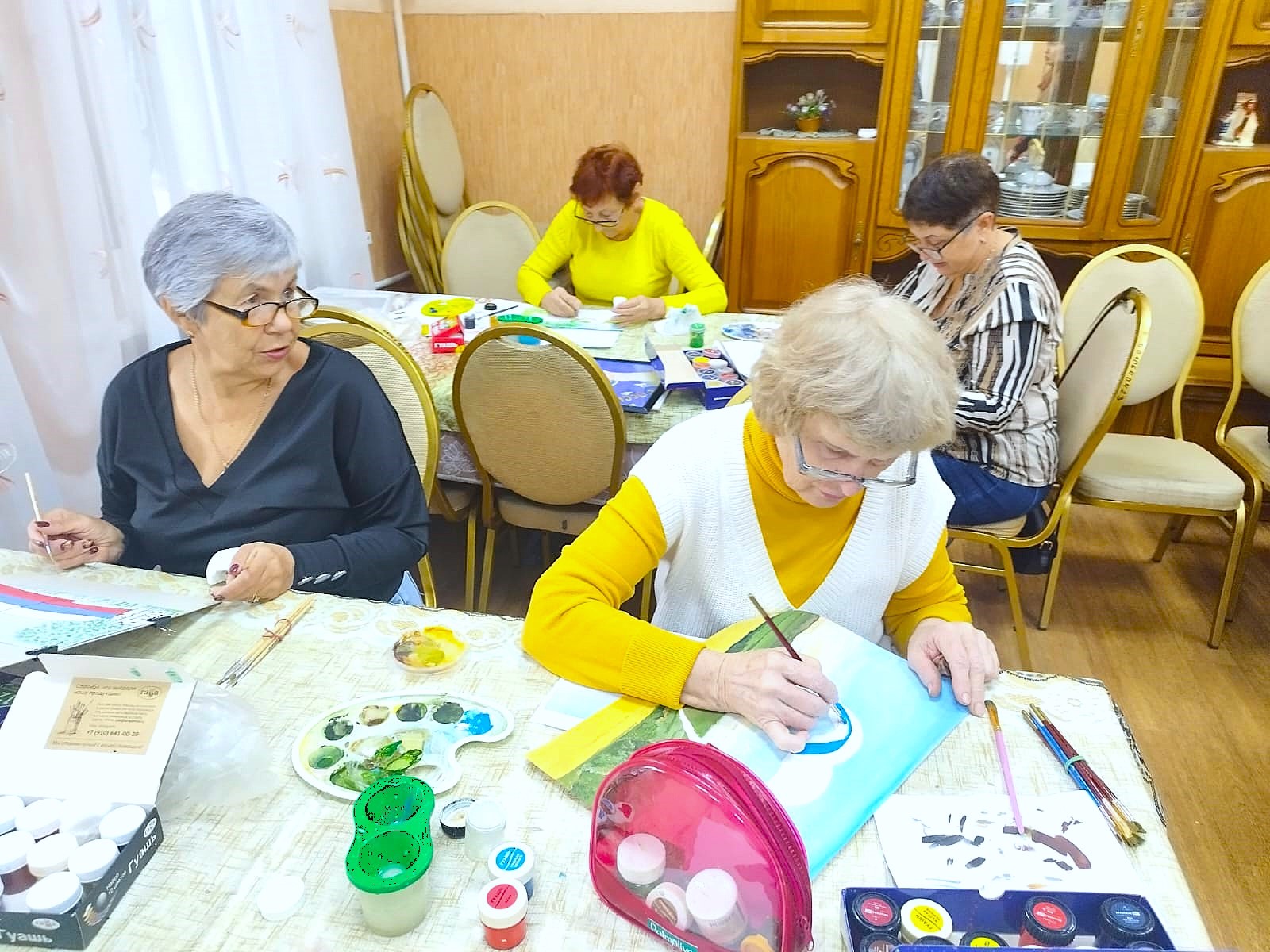 В уютной дружеской обстановке наши начинающие художники писали картины  о важных событиях России, о русских святынях и ярких подвигах прославленных героев. Тема патриотизма сегодня актуальна как никогда, она трогает сердца, поэтому работы творческих людей старшего поколения наполнены  такой болью за свою Родину и гордостью за ее победы.