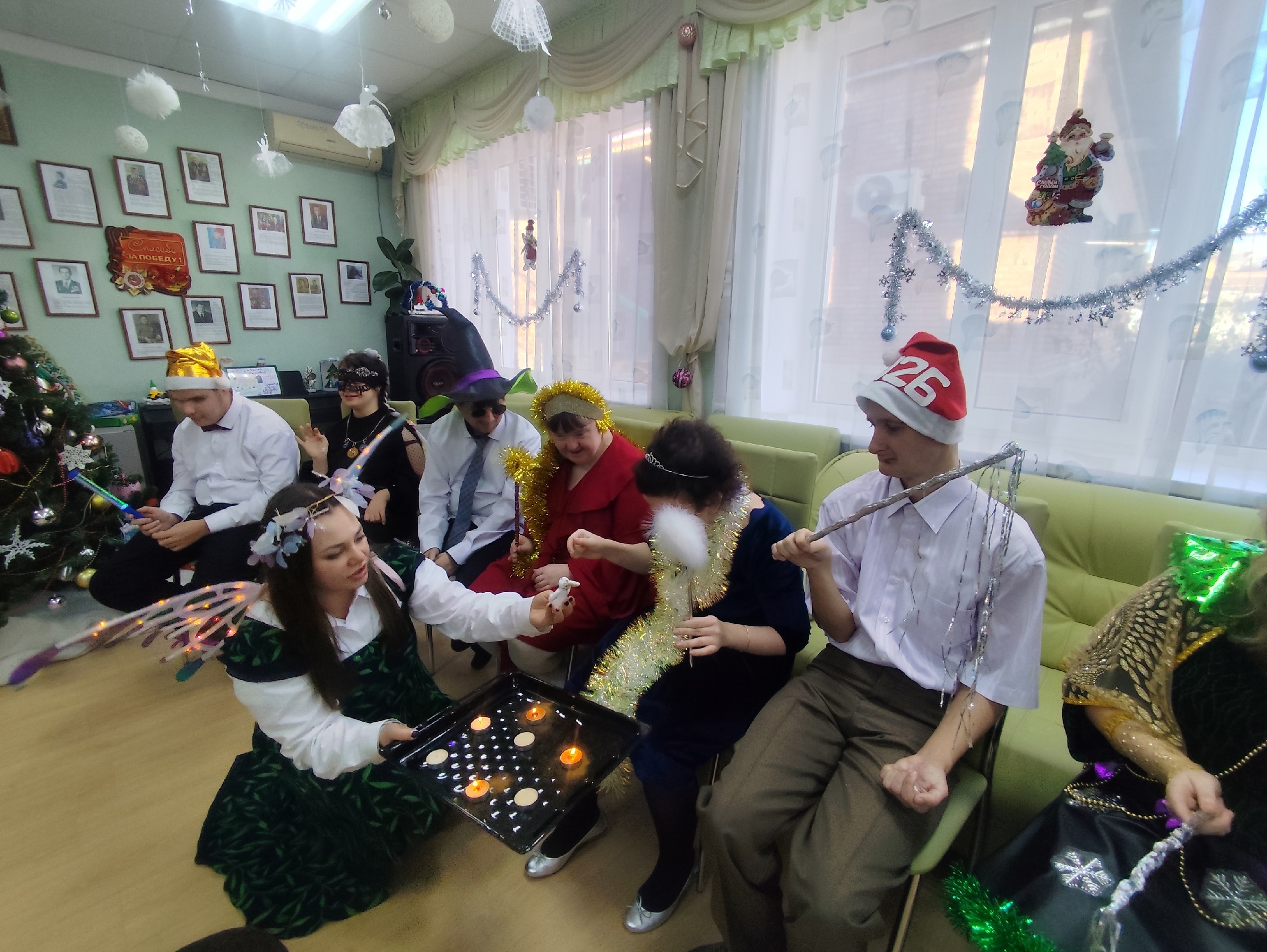 25.12.2025 в МБУ г. Шахты «ЦСО №1» состоялся «Новогодний карнавал чудес!» – инклюзивное праздничное мероприятие с участием приглашенных гостей, молодых инвалидов с ОВЗ и их родителей-опекунов.