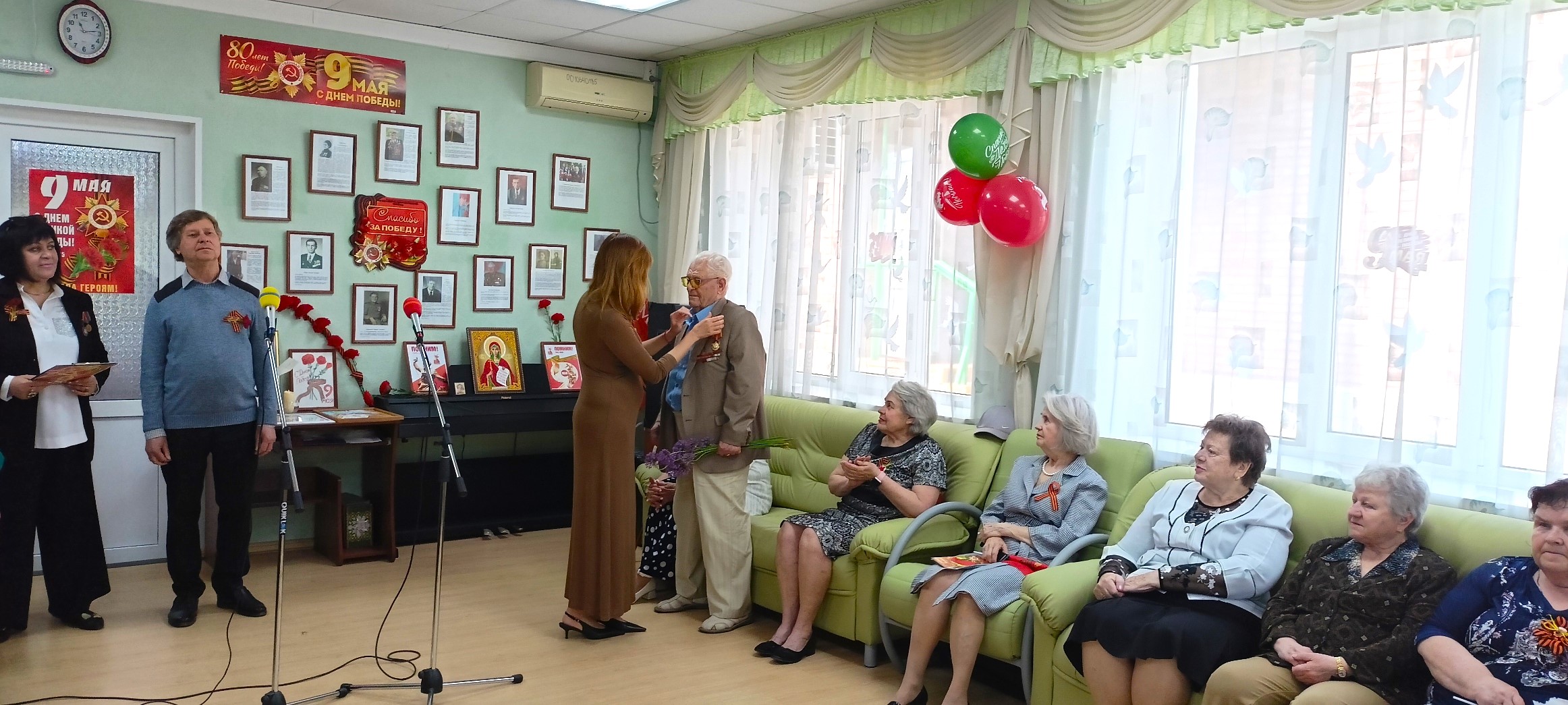 Равнение на Победу!06.05.2025 г. в МБУ г. Шахты «ЦСО №1» для получателей социальных услуг СРОДП в рамках плановых мероприятий, посвященных 80-летию Победы в Великой Отечественной войне 1941-1945 гг., состоялся Праздничный патриотический концерт «Равнение на Победу!» В концерте приняли участие самодеятельные артисты творческих коллективов города: ансамбль «Гармония» муниципального хора ветеранов, эстрадный ансамбль «Мелодия» Городского Дворца Культуры. Праздничные стихи и поздравления подарили собравшимся люди «серебряного возраста»: Валентина Дьякова и Евгения Пронина прочитали любимые поэтические произведения, а группа возрастных получателей социальных услуг поздравили участников мероприятия с 9 мая. Зырянов Никита – парень с ОВЗ порадовал зрителей удивительно проникновенным исполнением военных песен, а директор МБУ г. Шахты «ЦСО №1» Людмила Брюховецкая поздравила городской хор ветеранов с праздником и вручила участникам коллектива памятные украшения, выполненные руками получателей социальных услуг СРОДП. Большое праздничное застолье стало прекрасным завершением патриотического мероприятия, объединившего людей разных поколений, в едином порыве выразить свои эмоции и любовь к России через творчество. #Год_Защитника_Отечества_2025#Победа80 |