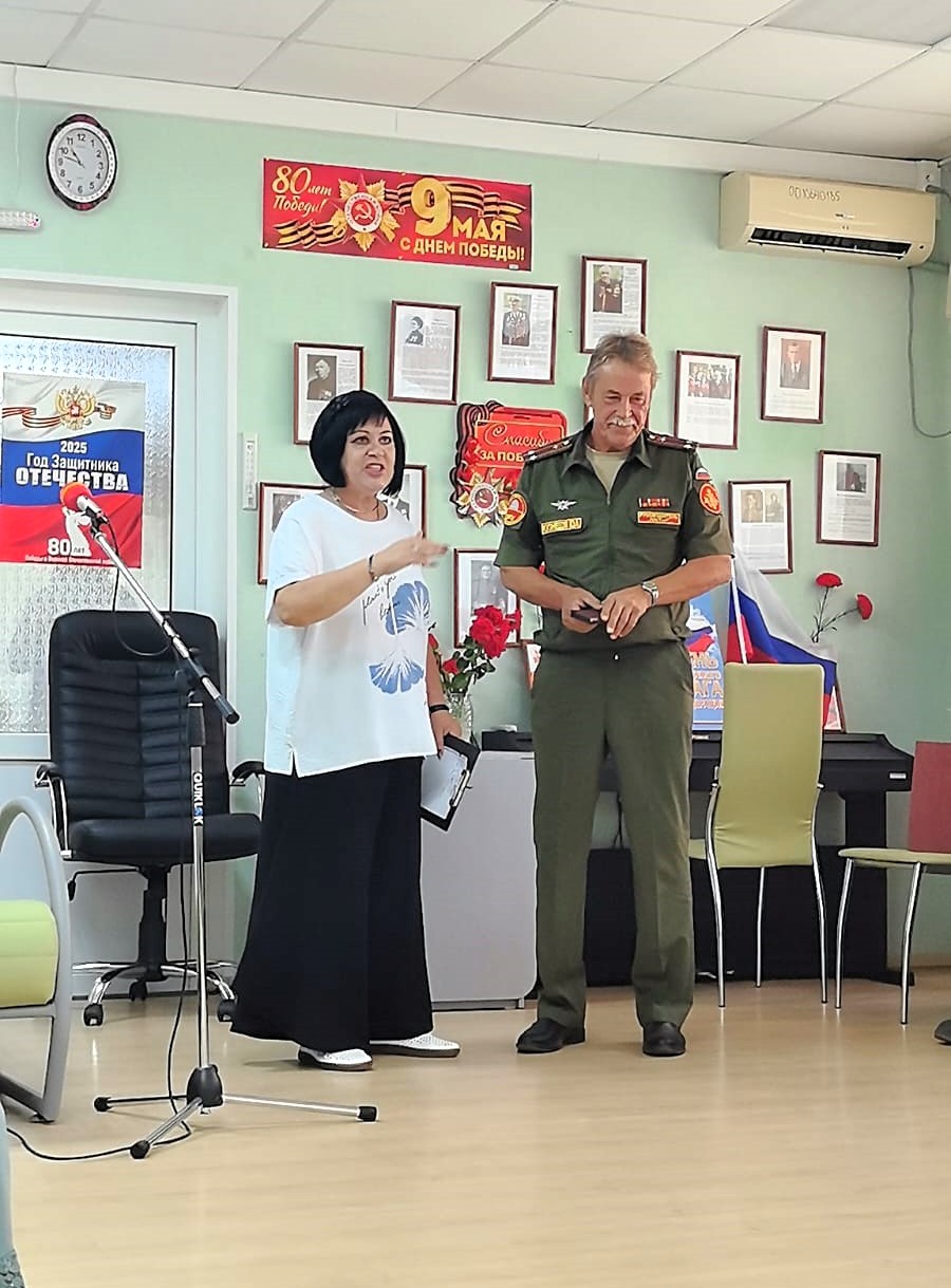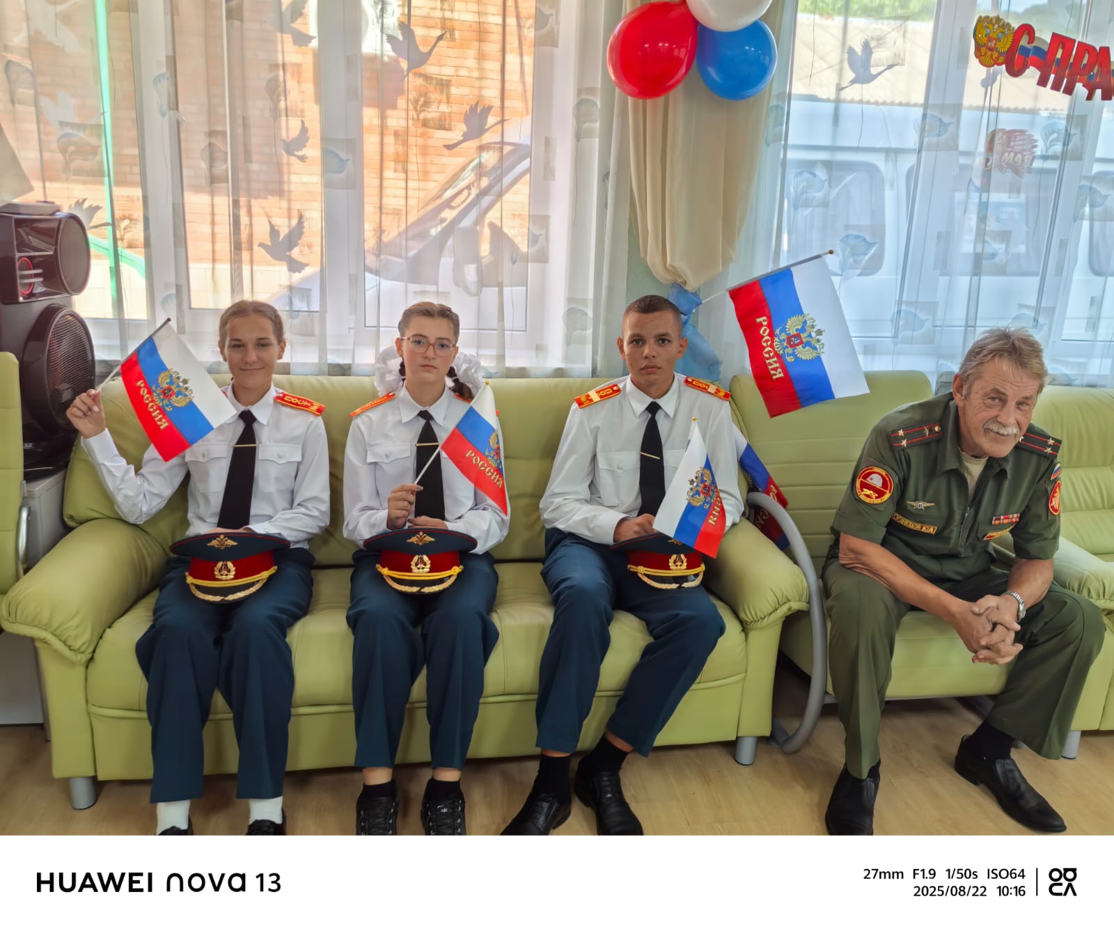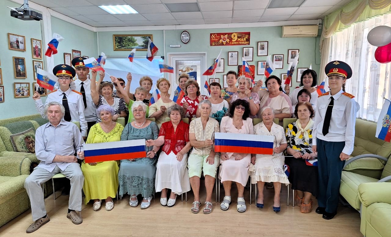 22.08.2025 г. в МБУ г. Шахты «ЦСО №1» для получателей социальных услуг СРОДП,  в рамках совместных мероприятий  с ШОП в Шахтинском местном отделении Партии в январе-июне 2025 года, состоялась тематическая концертная программа «Российский триколор» с участием представителей волонтерских движений и юнармейцев города (ко Дню Государственного флага Российской Федерации.
