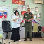 В гости к людям «серебряного возраста» пришли молодые ребята из команды «Пост №1»: София Слежаева, Илья Иванов и Василиса Ковалева со своим руководителем  Юрием Александровичем Кузнецовым.     Культорганизатор Елена Янполь провела презентацию с использованием интерактивного экрана, на тему «История флага России».