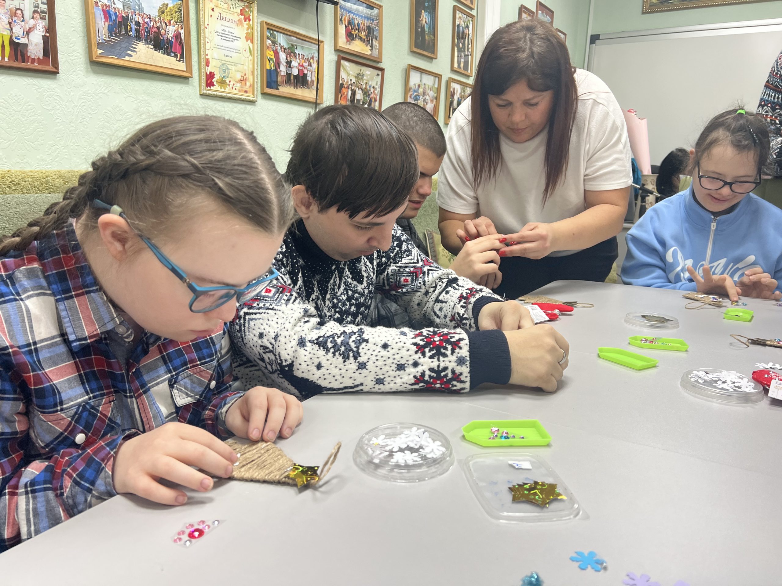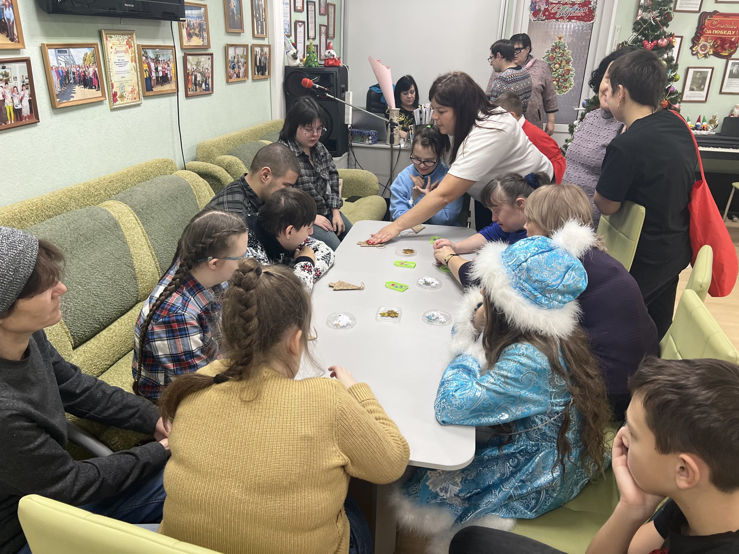 Создаем Новогоднее настроение23.12.2025 в МБУ г. Шахты «ЦСО №1» состоялась детско-родительская активность для получателей социальных услуг СРОДП – молодых инвалидов с ментальными нарушениями и их родителей (опекунов) совместно с участниками Шахтинского клуба молодых семей «7Я» «Создаем Новогоднее настроение». В гости к нашим ребятам пришли юные артисты и их родители, которые сначала показали свои творческие таланты, а затем провели для собравшихся мастер-класс по изготовлению новогодних украшений-елочек. Руководитель клуба Ирина Мазур поздравила всех присутствующих с наступающим Новым годом и рассказала о полезной работе своего отряда, о талантливых детях и творческих родителях. Веселая атмосфера дружбы и совместного творчества захватила и молодежь, и их родителей. Психолог Центра Татьяна Вдовиченко приготовила для ребят удивительное приключение «Путешествие в страну Новогодних украшений». Равнодушных не было за столом, все участники программы бурно обсуждали процесс изготовления игрушек, советовались и старались удивить окружающих. Подарки, поздравления и яркие эмоции еще больше скрепили дружбу между ребятами и зарядили их энергией и хорошим настроением на целый год. |
