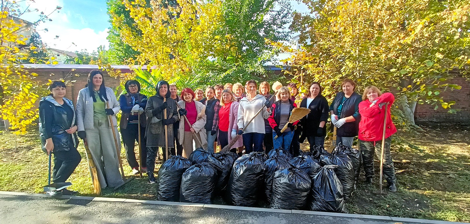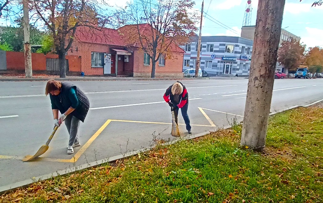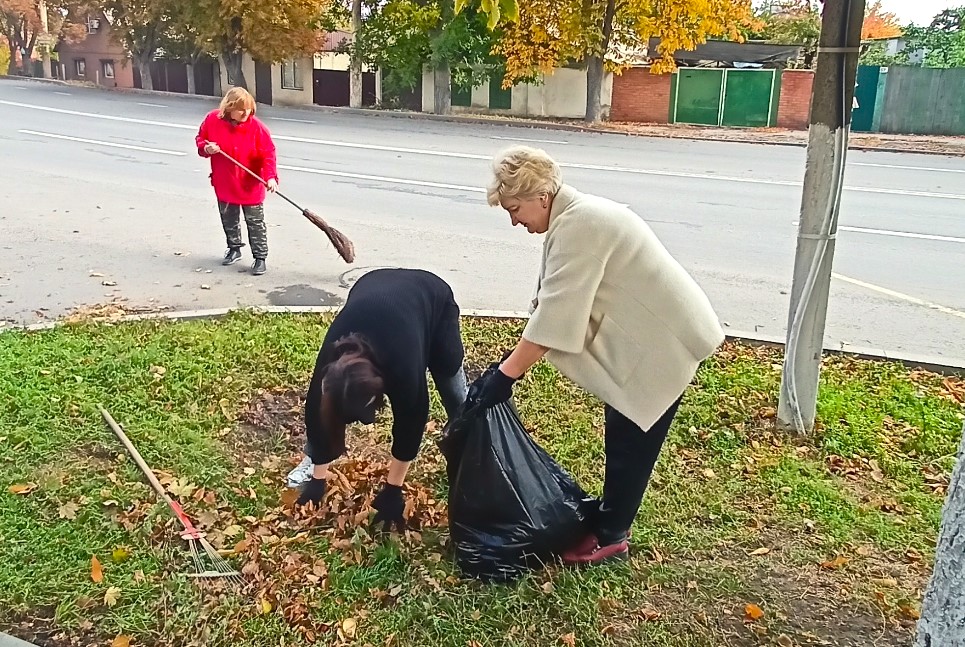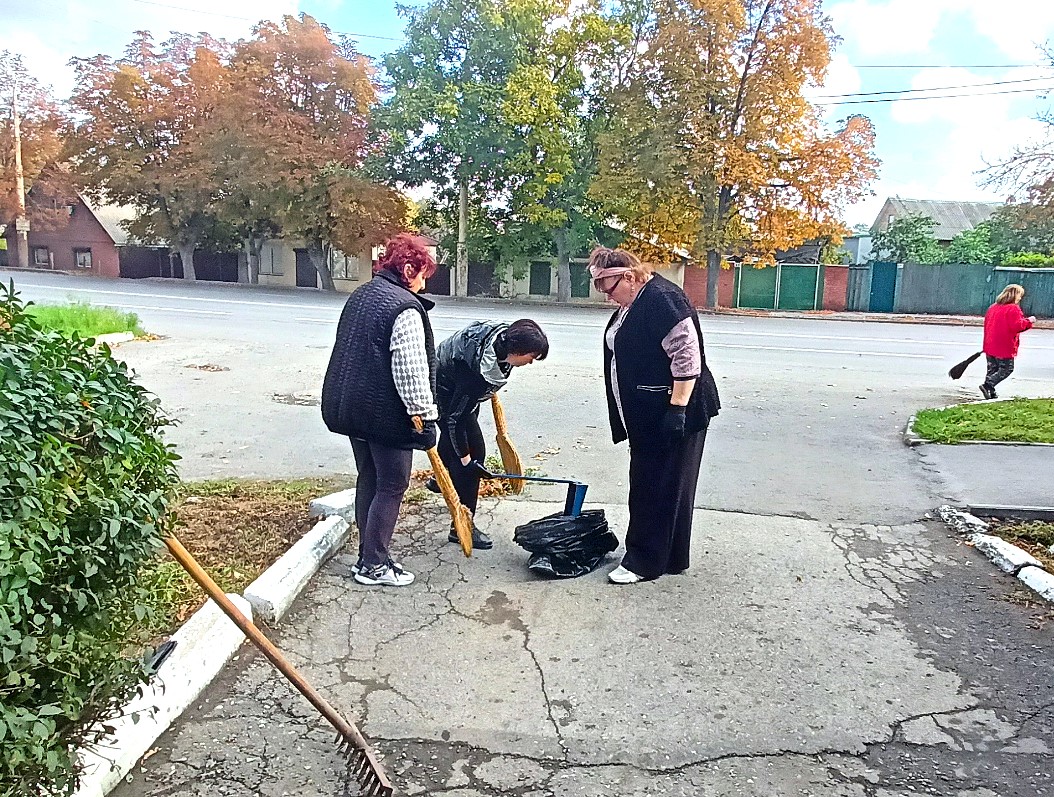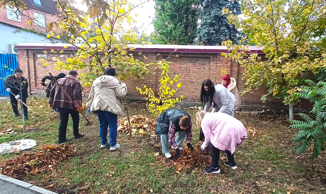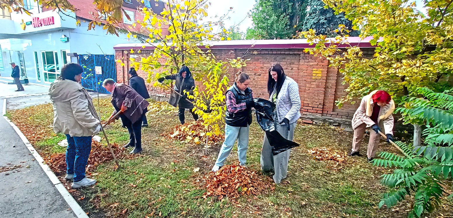 В рамках месячника чистоты  11.10.2025 сотрудниками МБУ г. Шахты «ЦСО № 1»  в количестве 35 человек была проведена уборка двора и прилегающих территорий (опавшей листвы, сухой и сорной растительности, случайного мусора, очистка от грязи прилотковой части дороги).